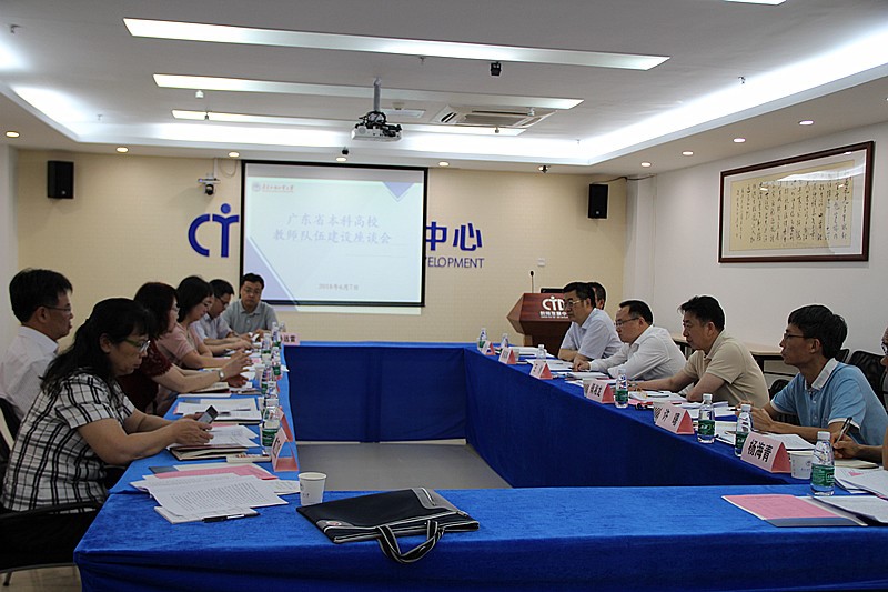 本网讯 2018年6月7日,省本科高校教师队伍建设调研座谈会在我校bc365会议室举行,广工、广外等全省5所本科高校分管校领导和人事部门负责人参加会议。会议由教育厅副厅长王创主持,师资管理处处长傅湘龙、人事处副处长许曙、教师继续教育指导中心主任廖荣辉陪同参加调研。我校副校长何传添、人事处处长谢文新、bc365主任孙远雷出席了座谈会。