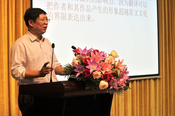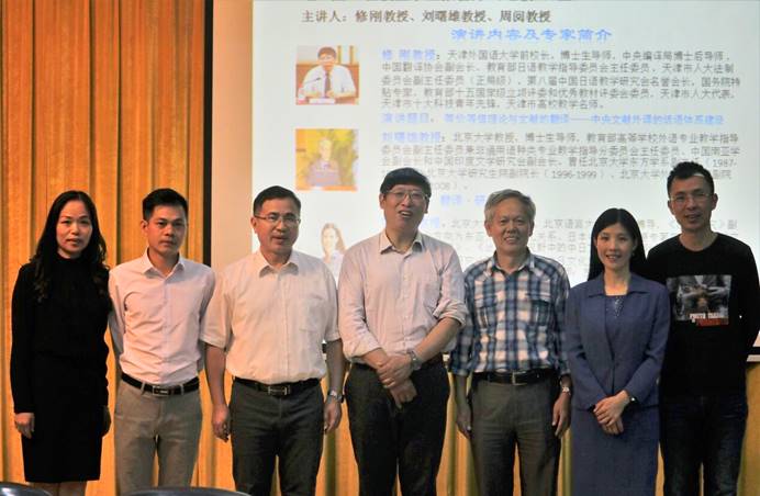 修刚教授以《等价、等值理论与文献的翻译--中央文献外译的话语体系建设》为题,以当前不同学派翻译视点为线索论述了“翻译研究的多样性”,并用大量生动有趣的例子探讨了等效、等值理论的意义。修教授还讲解了在翻译过程中如何应对“等值”的挑战以及如何从受众角度出发进行翻译,并分析了跨文化交际与翻译的关系。在结语中,修教授重点提到中央文献翻译在对外话语体系建设要以主导地位、辐射效应、中国声音为定位。中央文献翻译的着力点要放在建立话语体系、跨文化交际、做到多译本多形式多途径、把握中央文献的地位上。此外,修教授还点出翻译学将逐渐上升为独立学科的发展趋势。