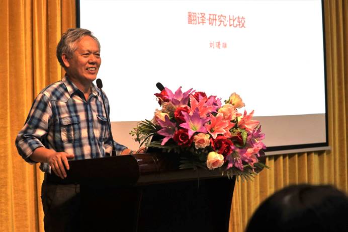 随后,刘曙雄教授以《翻译·研究·比较》为题,为现场听众带来了精彩演讲。刘教授提出,翻译是外语教师的职业属性,翻译者必须重视经典的历史文献与文学作品,并鼓励青年教师与同学们的翻译要有鲜明的风格和特点。刘教授还分享了自己年轻时与师长共同合作的翻译经历,引导大家应对翻译时应持谨慎的态度。