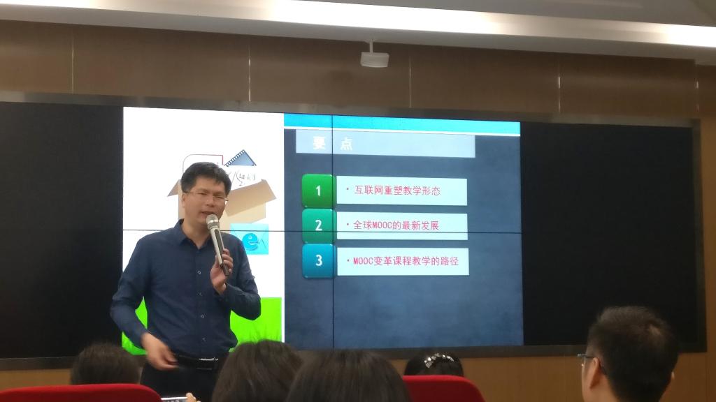 目前,互联网+时代的教学由封闭走向开放,如今的互联网新技术、新思维为高校课程教学组织形式、教学流程、评价方式重构等带来新的可能。华南师范大学教授柯清超与现场教师共同探讨MOOC变革高校教学的发展路径,要应用网络思维促进学校发展。他指出,网络时代推动高校教学变革的关键是提升领导力、促进学校教育与在线教育的融合。他提出,要实践与创新MOOC课程,把传统学习方式的优势和网络化学习的优势结合起来,实现面对面课堂教学和网络学习有机整合的混合式学习(Blended Learning),他鼓励教师应积极应用网络手段,融合传统课堂与在线学习的优势,创新课堂教学方式。