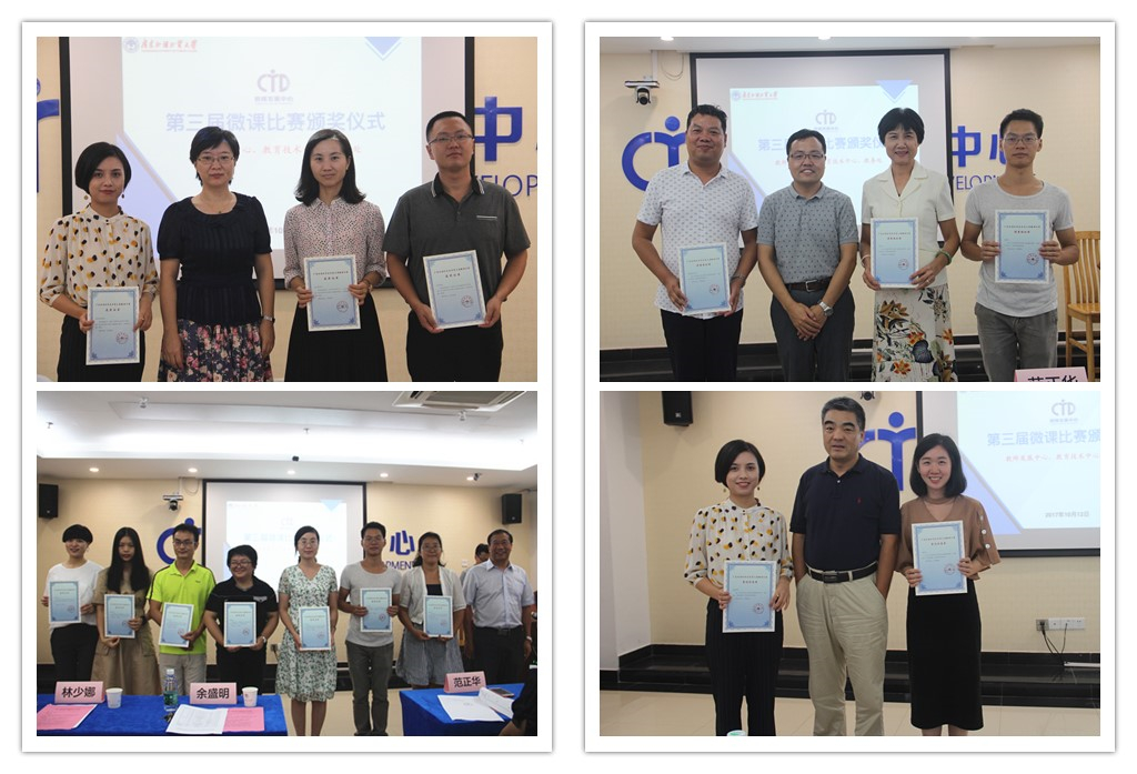 又讯,10月12日下午,“用技术创建互动课堂”专题讲座暨第三届微课比赛颁奖仪式在bc365多功能会议室举行。教育技术中心书记范正华、教务处副处长余盛明、bc365主任孙远雷、体育部主任林少娜、英语教育学院副院长陈金诗以及获奖教师出席了颁奖仪式。颁奖仪式由孙远雷主持。