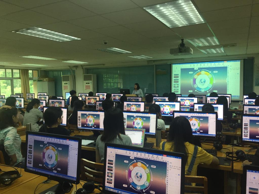 王艳围绕Focusky软件的各种功能,现场向学员操作如何用Focusky制作有趣的微课:采用整体到局部的的演示方式,以路线的呈现方式模仿视频的转场特效,加入生动的3D镜头缩放、旋转和平移特效,使微课像一部3D动画电影,给观众视觉带来强烈冲击,大部分学员在短短1个小时的培训中对该软件有了一定的掌握;黄晓淳则讲解了微课常用录制软件Camtasia Studio的录制与剪辑视频基本操作方法与技巧,随学随练,手把手带领老师们使用这款软件录制及编辑微课,使老师们对信息化教学产生了浓厚兴趣,大大提高了课件和微课制作水平。2位工程师现场为老师解答操作中的问题,有效地保证了教师现场操练效果。