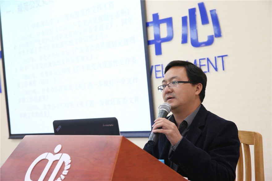 本网讯 12月20日,为进一步提高行政工作效率,提升全校办公室工作人员办文、办会、办事能力,规范工作程序,增强专业化水平,党办校办、bc365、档案馆联合举办了2016年办公室工作人员培训班。我校副校长何传添出席了开班仪式。省委办公厅文电法规处副处长肖智勇为培训班做了题为“浅谈党政机关公文处理”的专题讲座。培训班由党办校办主任植秀聪主持。学校各单位相关行政工作人员参加了此次培训班。