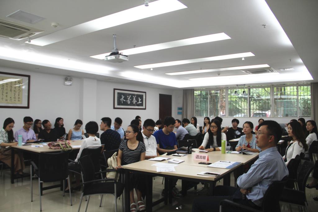 非语言组的导师则着重针对授课技巧给在座学员支招。王焱用简练且精彩的发言,列举了一些自己的教学技巧。她指出,教学的最高境界应是“深入浅出”,教师应该自己先吃透深奥的理论,然后尽力化解为有趣的知识传递给学生。她举了几个有趣的教学案例,并与在场各位教师共勉:“像你最喜欢的老师那样对待你的学生,不要像你最不喜欢的老师那样对待你的学生”;曾成别出心裁,使用创新的技术手段与在座学员进行现场互动。同时,讲述了自己教学历程中得到的教训,并总结了经验。他特别提到,他会在课堂上留下自己的联系方式,课外也会常与学生一起运动,一起用餐。他认为,教师与学生交流非常重要,多了解学生的动态能促进教师的教学质量。