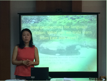 为推动我校英语教师的专业发展,bc365联合英语教育学院近期推出了英语教师专业发展工作坊,邀请广外大云山讲座教授郑东萍博士开展系列讲座“New Perspectives onLanguage Education: What can we truly learn fromEast and West?”讲座共分四场,均在南校区院系楼245举行,来自英教学院和其他学院的老师们参加了讲座。