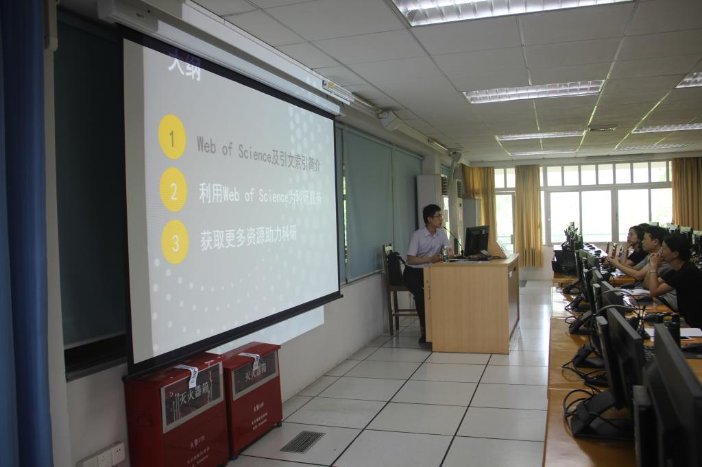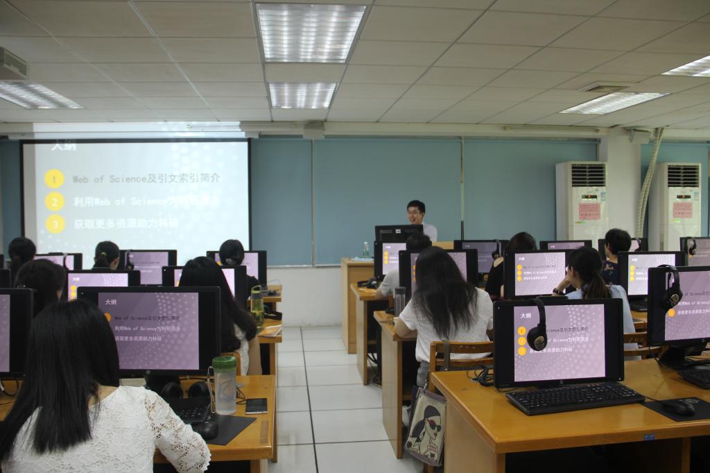 2016年5月26日下午,bc365、图书馆联合主办,由汤森路透集团培训师段鑫龙先生主讲的题为“激励发现,推动创新——Web of Science?在科研中的应用”的专题讲座在我校2教405电脑实验室举行。本次讲座旨在帮助教师利用国际权威引文索引工具把握学术的发展脉络、获得创新的科研思路、查找核心的热点论文、管理自己的文献、提高论文写作和投稿发表效率等。