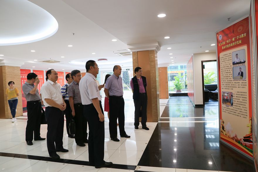 我校副校长阳爱民等陪同卢景辉一行实地参观我校的党代表工作室、统战会议室及bc365。我校党委组织部部长方迎生向来宾展示我校落实“三严三实”、“两学一做”的党建工作成果及团结多民主党派的统战工作成果。bc365主任孙远雷详细介绍了中心的工作经验和取得的工作效。