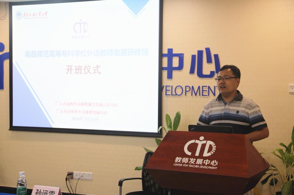 本网讯 7月11日上午9点,由广外bc365主办的南昌师范高等专科学校外语教师发展研修班在bc365多功能会议室举行了简短的开班仪式。广外bc365主任孙远雷、英文学院欧阳护华教授,南昌高等专科师范外语系副主任熊晓春等人出席了仪式并做了讲话。